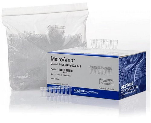 Applied Biosystems® MicroAmp® 光学8联排管理想的设计,可紧密放置于我们的 Applied Biosystems® 实时荧光定量PCR系统或PCR仪中,较大程度提高热传导性和精确控制循环温度。需使用适合您的仪器的托架或支座板。